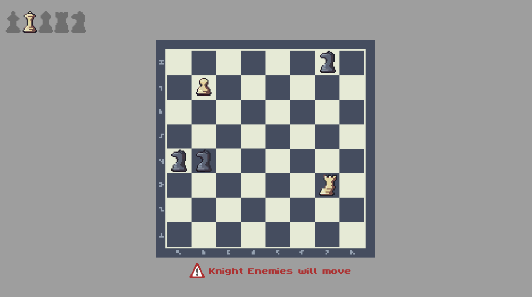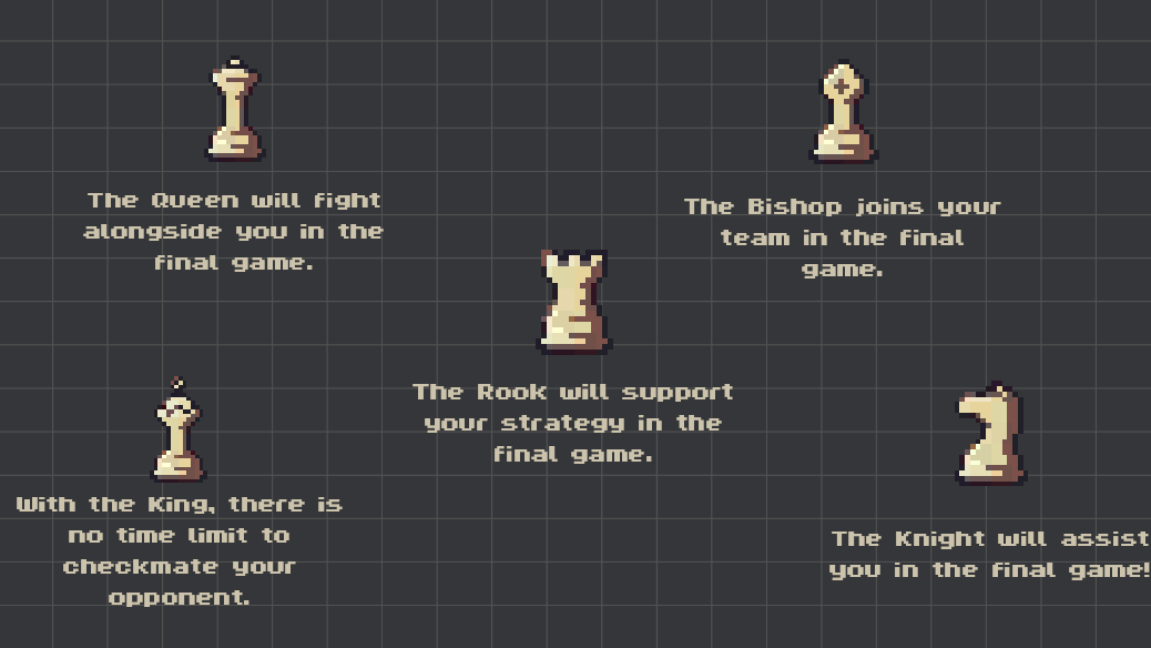 The player becomes the only remaining pawn, navigating a board where missing pieces such as queen, king, bishop, knight and rook spawn, each representing a unique challenge. By solving the puzzles, the player gradually restores the board and reconstructs the game of chess itself.